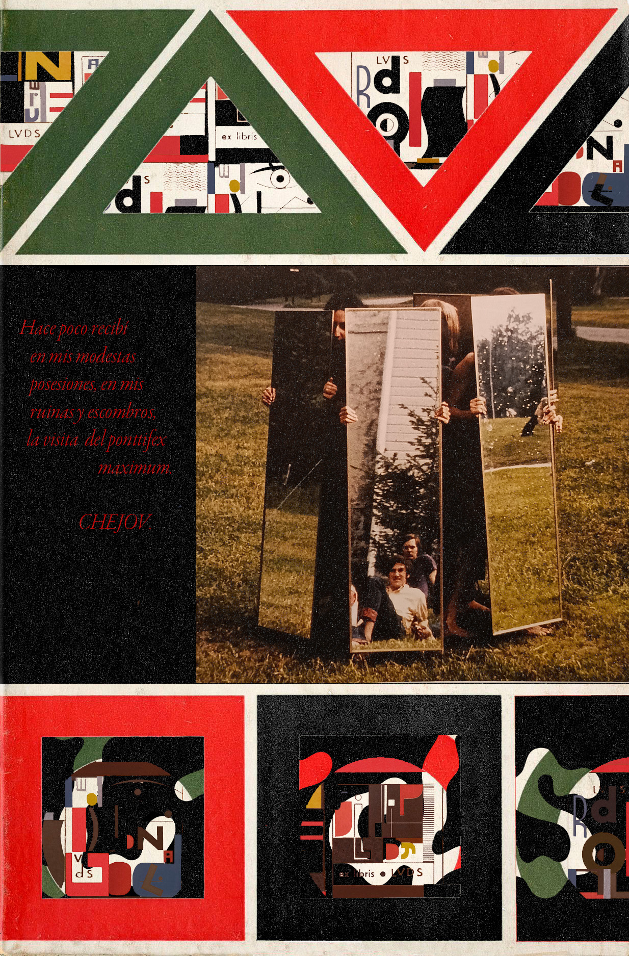 CUADERNO ROJO, hay obra orig. Mirror Piece I, performance view (1969), de Joan Jonas en Nueva York. Hay obra orig. The Space Age Is Here To Stay (2016), de Antón Chéjov. Cuentos completos (estuche 4 volúmenes), de Antón Chéjov (1880-1903) Primera edición original en castellano: Ediciones Páginas de Espuma. Madrid, noviembre de 2017. Edición de Paul Viejo. Cartoné. 4565 pp. 20 x 22 cm. Primera entrega: 1880-1885. Segunda entrega: 1885-1886. Tercera entrega: 1887-1893. Cuarta entrega: 1894-1903.