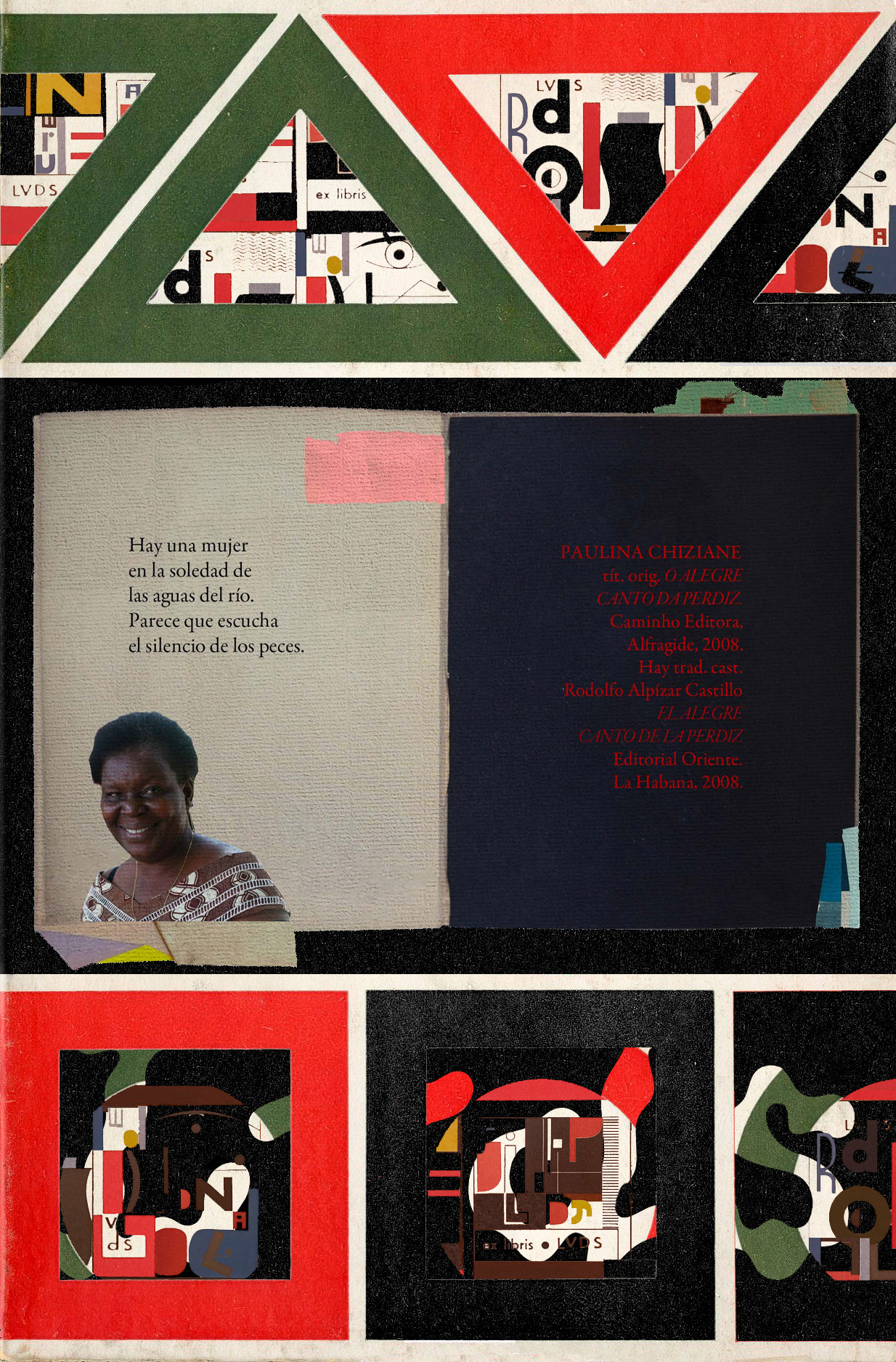CUADERNO ROJO, hay obra orig. TO ALEGRE CANTO DA PERDIZ (2008), de PAULINA CHIZIANE. Caminho Editora, Alfragide, 2008. Hay trad. cast. Rodolfo Alpízar Castillo. EL ALEGRE CANTO DE LA PERDIZ. Editorial Oriente. La Habana, 2008